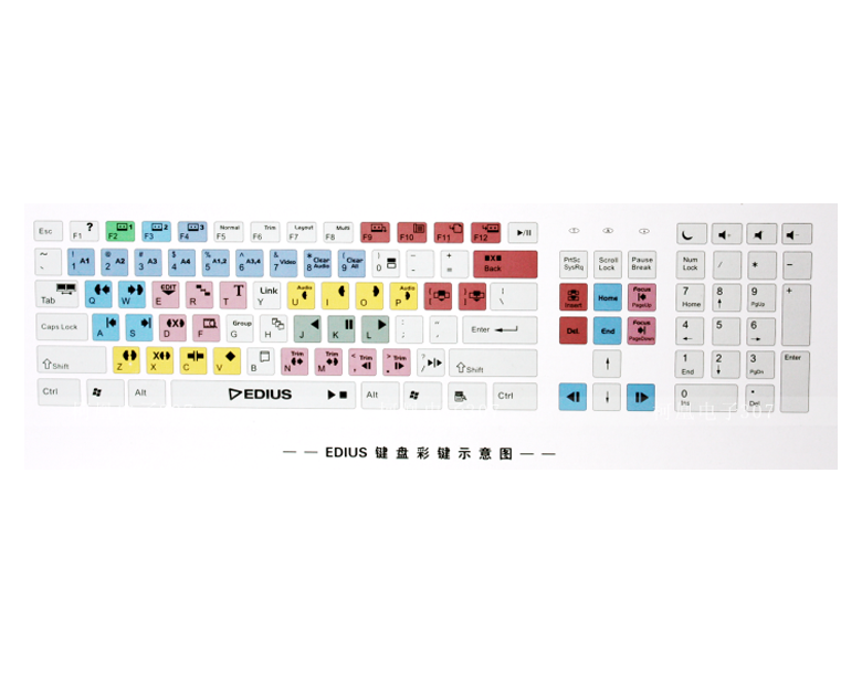 型號(hào):EDIUS的剪輯鍵盤 功能鍵擁有獨(dú)立分色,便于區(qū)別。