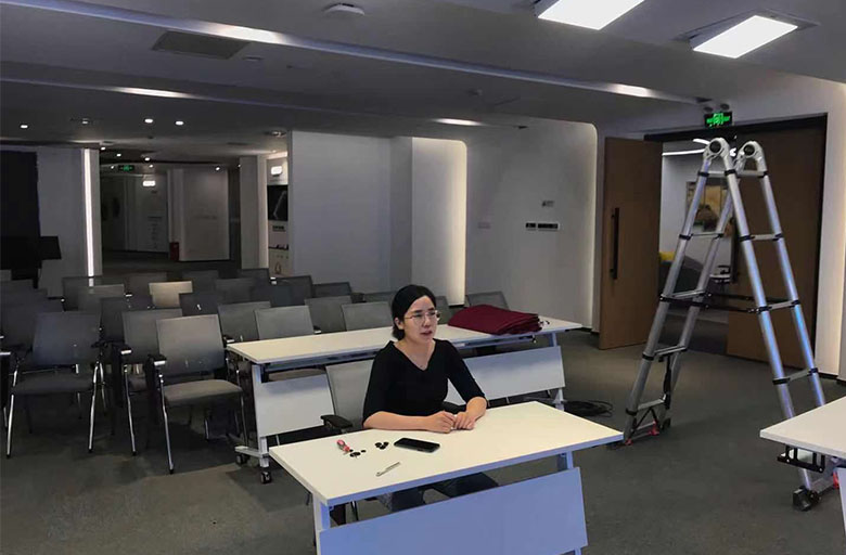 北京京晉科技有限公司位于北京市海淀區(qū),主要從事技術(shù)開發(fā)、技術(shù)轉(zhuǎn)讓及技術(shù)推廣等,公司展廳有一個(gè)演講臺,起初裝修的時(shí)候沒有考慮到拍攝問題,裝修完成使用時(shí)發(fā)現(xiàn)拍出的照片人臉發(fā)黑,觀感很差。