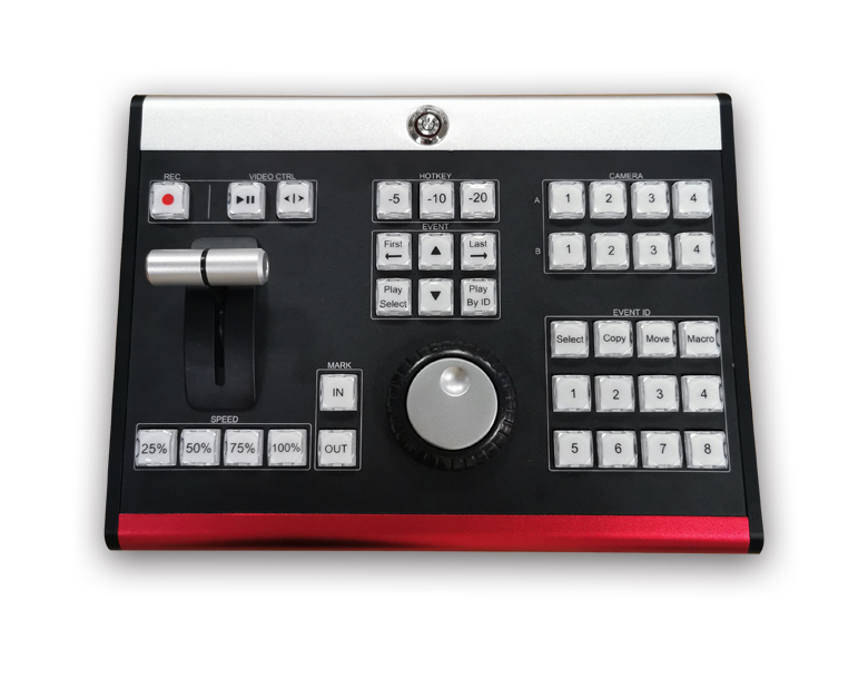 TY-REW380新款直播慢動作切換臺擁有優雅設計,是一臺專為所有天影視通實時直播慢動作回放系統打造的專業級硬件控制面板。它具備十足的現代感外觀和MIDI通訊協議接口,能及時的加快直播回放的工作流程。面板采用38個曲線型按鈕,能夠降低誤操作的幾率。按鈕均采用背光設計,幫助您快速識別重要鍵控。此外,他還配備快速搜索盤和T型推桿等。按鈕支持動態顯示,所有按鍵支持自定義設置。