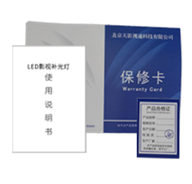 | LED補光燈 (包含燈體、柔光板、遮飛與燈弓) | 電源線1米 1條 | 附件 1套(包含保修卡、合格證、說明書) |